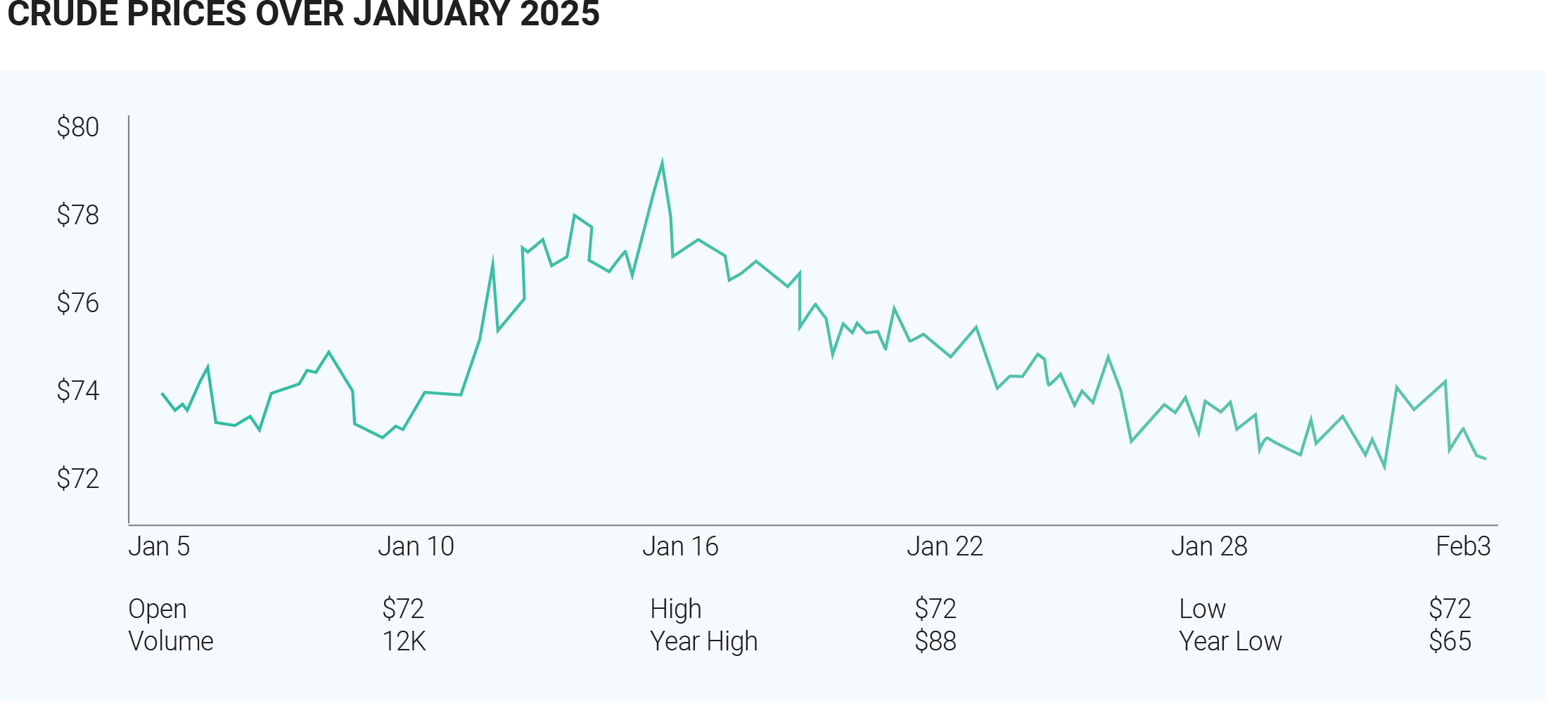 Crude oil prices in India experienced a significant decline throughout January 2025 due to a combination of global and domestic influences. At the start of the month, Brent crude oil stood at approximately $80.79 per barrel on January 17. By January 24, prices had dipped to around $78.26 per barrel. Although the Indian basket price recovered slightly to $80.49 per barrel by January 28, the overall trend remained downward. One major factor contributing to the decline was the easing of geopolitical tensions. Market analysts observed growing optimism regarding a potential resolution to the Ukraine-Russia conflict, reducing the geopolitical risk premium that had previously supported higher oil prices. Additionally, expectations of increased oil production in the United States under the new administration further influenced market dynamics. Following President Donald Trump’s inauguration, there were strong signals of heightened U.S. energy output. Trump declared a national energy emergency and announced aggressive plans to maximize domestic oil and gas production. Markets reacted by pricing in an anticipated rise in U.S. crude supply, which added downward pressure on global oil prices. Weaker-than-expected demand growth, particularly from China, also played a role in softening prices. As one of the world’s largest consumers of crude oil, China’s reduced demand dampened market expectations. Simultaneously, rising production levels, especially from non-OPEC countries, further contributed to the anticipated global oil surplus. The situation was compounded by sanctions imposed by the U.S. on Russian oil trade, creating short-term disruptions. However, these sanctions prompted Indian refiners to explore alternative sources for crude, primarily from West Asia. Although this added complexity to the supply chain, it did not prevent the overall decline in crude prices. These developments collectively influenced the downward trajectory of crude oil prices, presenting potential economic benefits for India. Lower oil prices can help reduce import costs and alleviate inflationary pressures, providing some relief for the economy. Looking ahead, the situation remains fluid, with factors such as geopolitical developments, global inventory levels, and shifts in major economies' demand likely to shape future oil price trends. For now, India's energy sector may capitalize on reduced costs while navigating a complex and evolving global energy landscape.